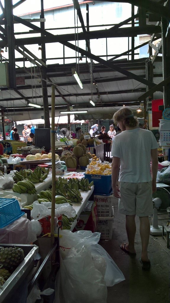 Two bags of mangosteens in hand, Freddy and I trailed Tim and the rest of the group through Chiang Mai as songthaews, tuk tuks, and mopeds zipped past us as we walked. Telephone and electrical lines zig-zagged back and forth above us, attached to buildings on either side of the road. These buildings, unfortunately, gave us no shade from the sun. Combine this sunlight with the muggy humidity and there is no way you won’t be sweating. You get used to it though… the humidity, the hot sun, the sweat… especially the sweat. In hot climates, sweating is your friend. Have you ever wondered why the countries or peoples who generally live in a hot or humid (or both) climate tend to always have spicy food? Spicy food makes you sweat. Sweating cools down your body so you don’t overheat. So, if you are a fucking superhuman or something and the hot Thai sun and humidity won’t make you sweat, the food will.